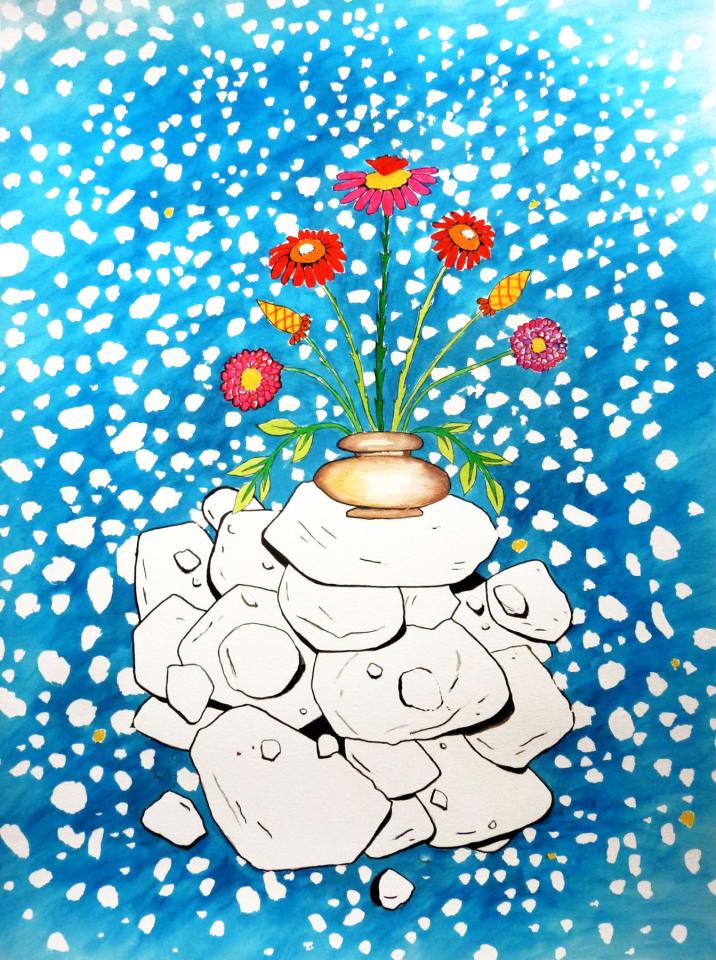 Décembre, 2014, peinture acrylique sur papier, 65 x 50 cm