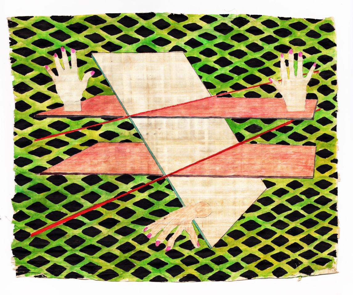 Aquarelle et papyrus, 2014, peinture acrylique sur papier, 34 x 42 cm