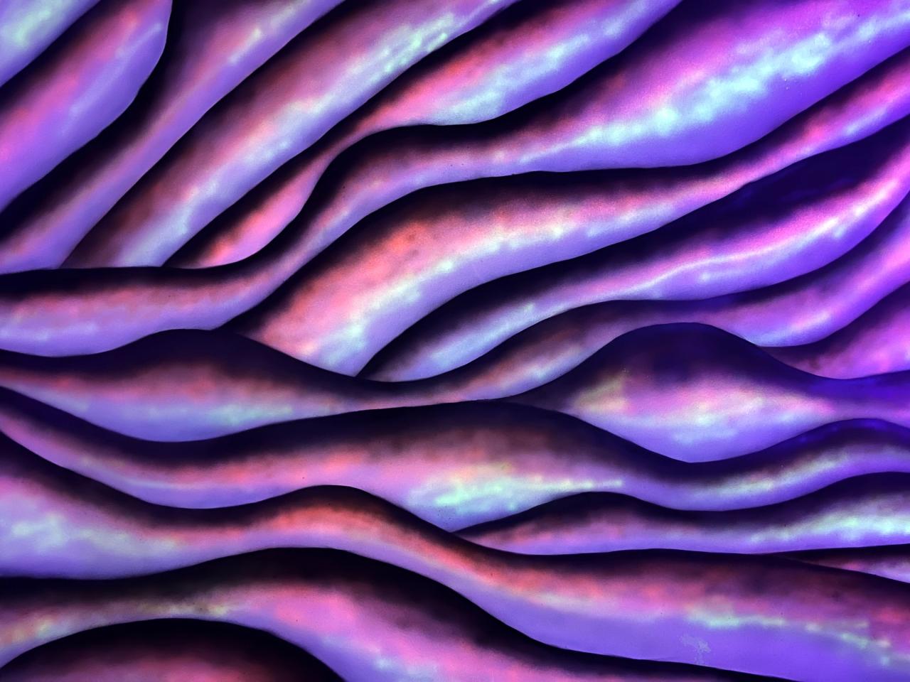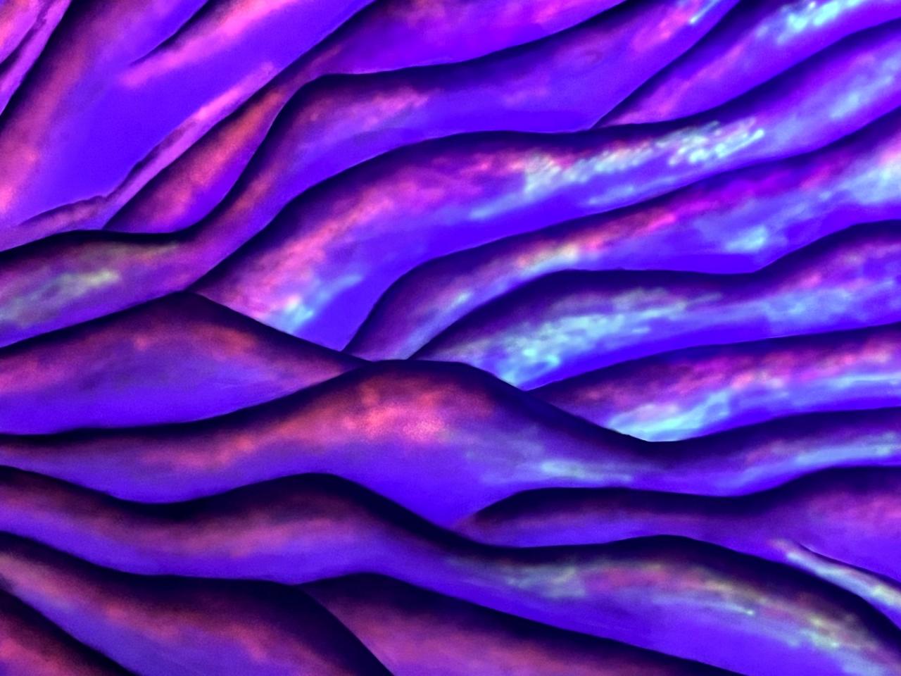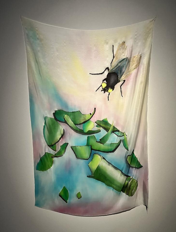 Marianne Plo, Sans titre, 2023, peinture sur soie, vue de l’exposition FLUO PARTY : art, mode, musique, 2023, La Fabrique, Toulouse, vidéo Jérôme Carrié