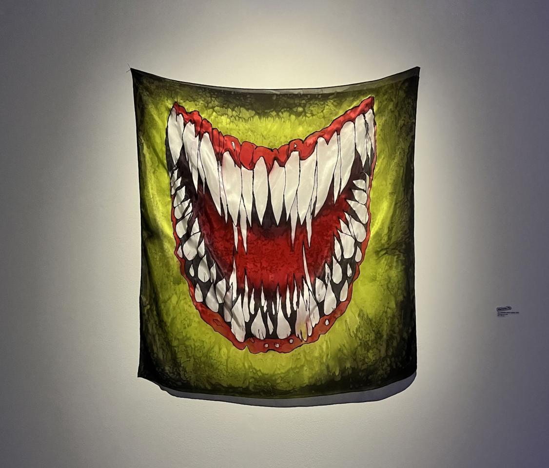 Sans titre, 2023, peinture sur soie, 120 x 90 cm, vue de l’exposition FLUO PARTY : art, mode, musique, 2023, La Fabrique, Toulouse, photo Jérôme Carrié