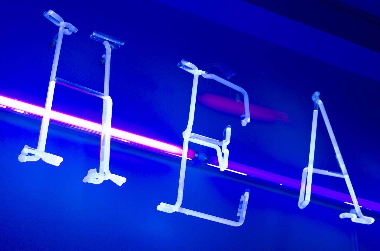 CHEAP, 2016, néons, Schweppes, lumière noire, 300 x 100 x 20 cm, photo Cyril Boixel