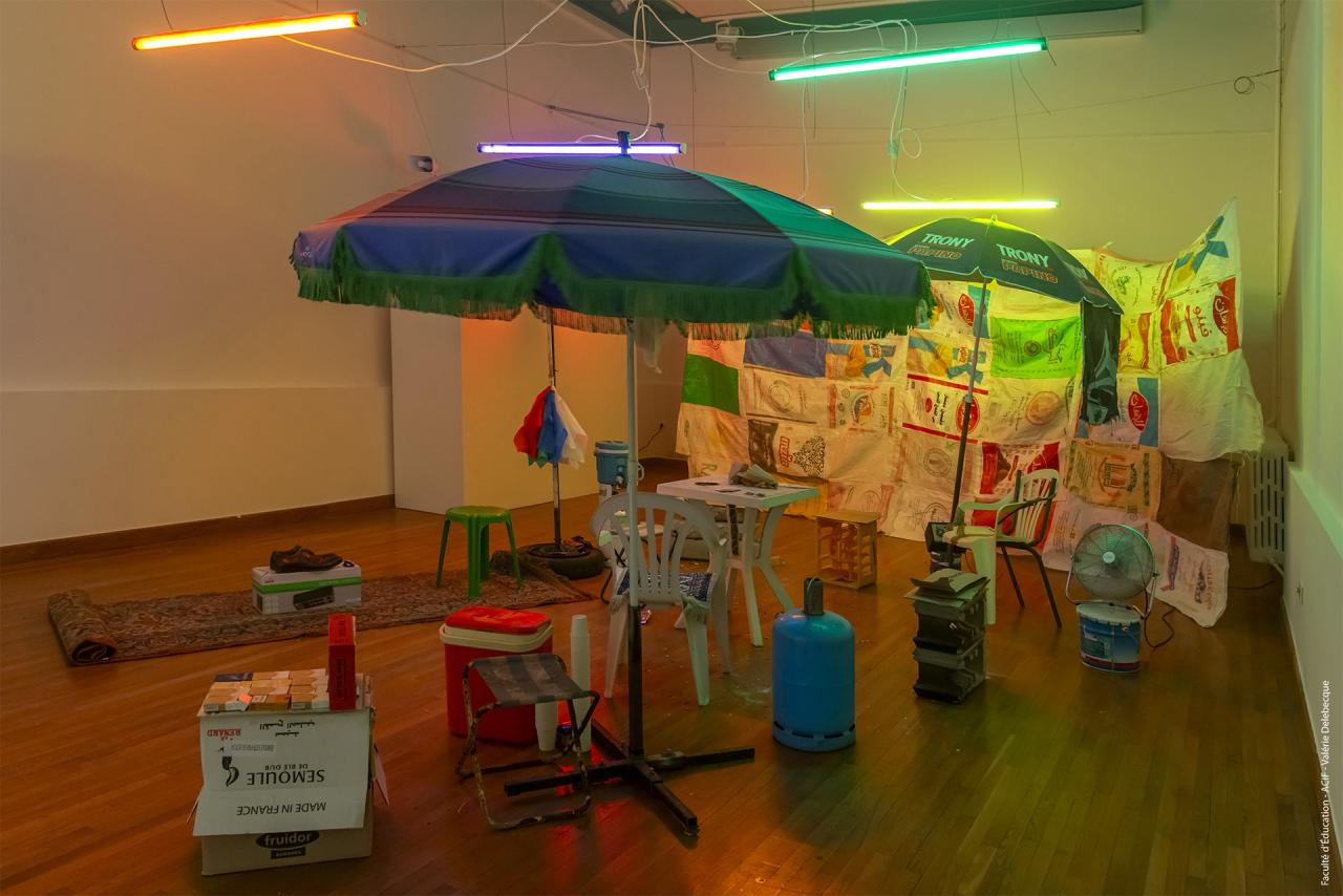 L’Guelsa, 2023, installation, vue de l’exposition Bab El Had II à la Faculté d’Éducation de l’Université de Montpellier, en partenariat avec le MO.CO Montpellier Contemporain, 2024, photo Valérie Delebecque