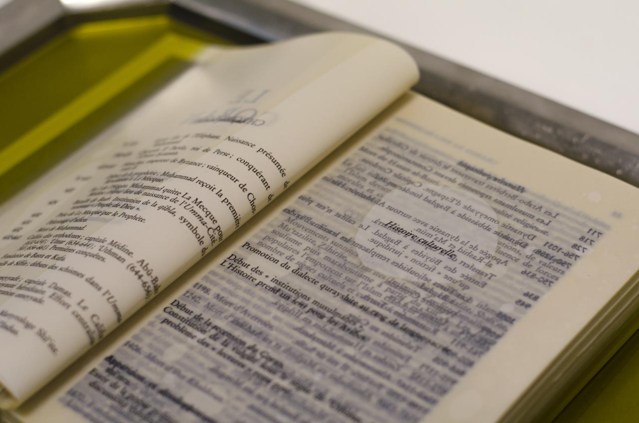 Propre cuisine, 2018, coran, huile d’olive, 40 x 10 x 30 cm, photo Cyril Boixel
