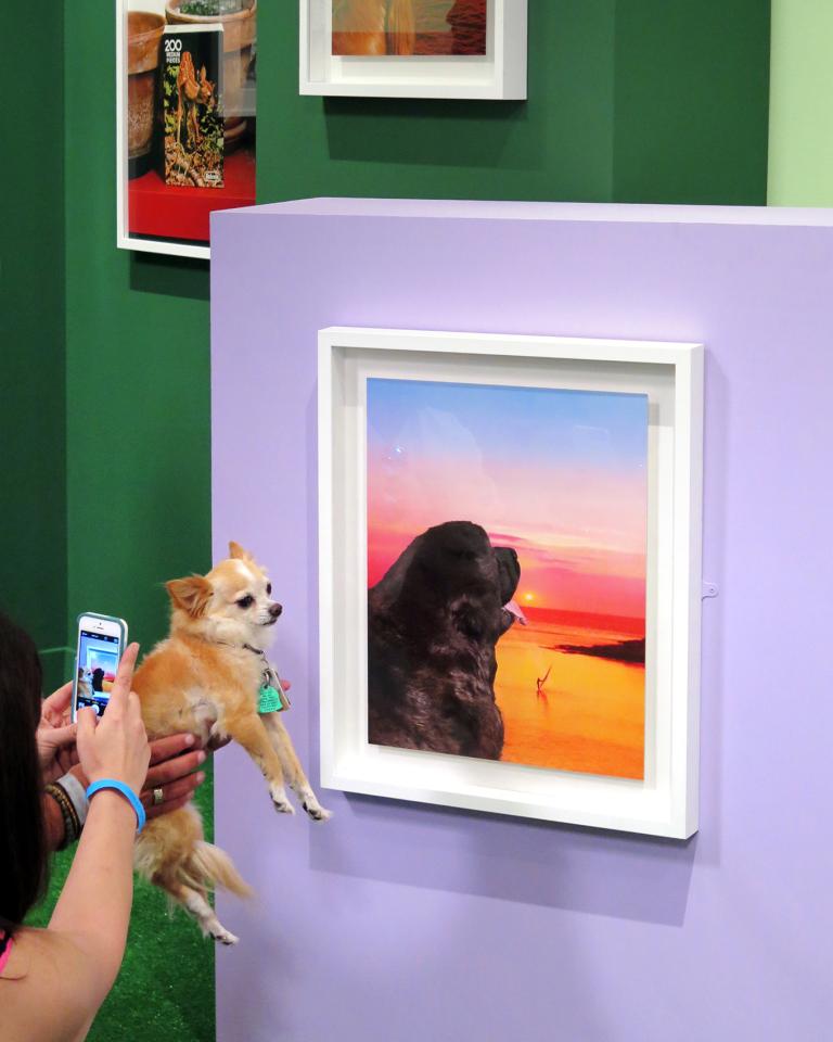 Le deuxième ensemble qui s’intitule Le meilleur Ami du chien agit comme un contrepoint. On y voit des représentants de nos amis canins, de dos, qui semblent perdus dans la contemplation de couchers de soleil romantiques.