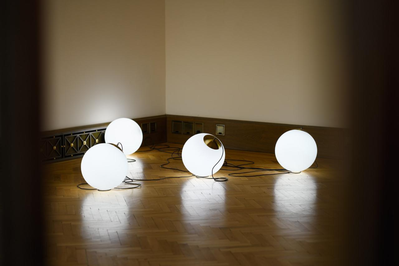 Ces objets, une partie de l’installation, seront aussi utilisés pour une performance et l’idée est pour moi que, comme l’installation, et souvent dans mon travail, ces espaces soient des points de rencontre entre les personnes, entre le public et mon travail, entre moi et mon travail. Mais aussi entre moi et d’autres artistes, d’autres créateurs. C’est déjà le cas dans le film qui est une collaboration avec un danseur appelé Robertem Bridgerem et ici je voulais activer cet espace, d’une manière plus sensible, utiliser la musique et toujours une manière de faire référence à la philharmonie, qui est aussi présente ici ainsi qu’à la résonance de l’espace. Cela m’intéressait beaucoup en cela, c’est un peu comme si la musique allait sans doute mettre en mouvement ces objets statiques qui sont ici.