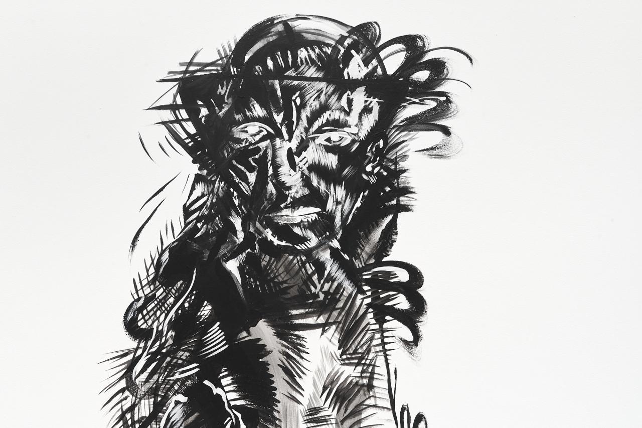Ancestral Muse IV, 2023, feutre acrylique sur aluminium, vue de l’exposition To Be Blindly Hopeful, 2024, Mostyn, Llandudno, Royaume-Uni, détail, photo Rob Battersby