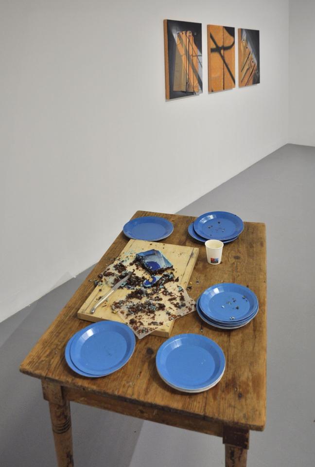 Cake sur cake, 2022, gâteau au chocolat avec impression sur pate à sucre, vue de l’exposition personnelle Comme si…, 2022, Galerie Aperto, Montpellier
