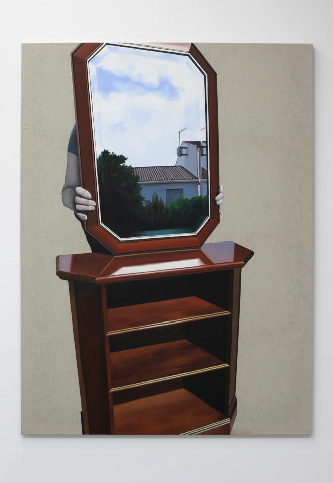 Elles sont accompagnées par deux huiles sur toiles Meuble salle de bain et Meuble ancien (2021) dont les formats sont plus généreux. On voit y apparaître partiellement une figure humaine qui dans les deux toiles se cache derrière ou à côté d’un miroir pour « disparaître au profit de l’objet qu’ils essaient de mettre en valeur ». Pour Sam Krack, ces peintures se réfèrent « à des photos d’annonces d’objets en vente sur les plateformes en ligne entre particuliers (…) elles échappent à la logique du scoop, de l’effet ou de rareté. Leur seule raison d’exister est de prouver l’existence d’un objet, voire de témoigner de l’état de celui-ci ».