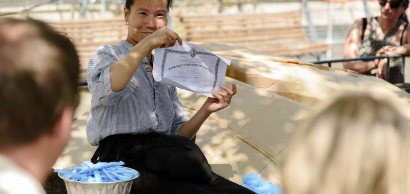 Les performances de Socheata Aing résultent d’un mélange d’éléments harmonieusement combinés, que la pratique de l’écriture vient irriguer en profondeur. L’artiste nourrit chaque nouvelle performance d’un récit, très souvent personnel, (…)