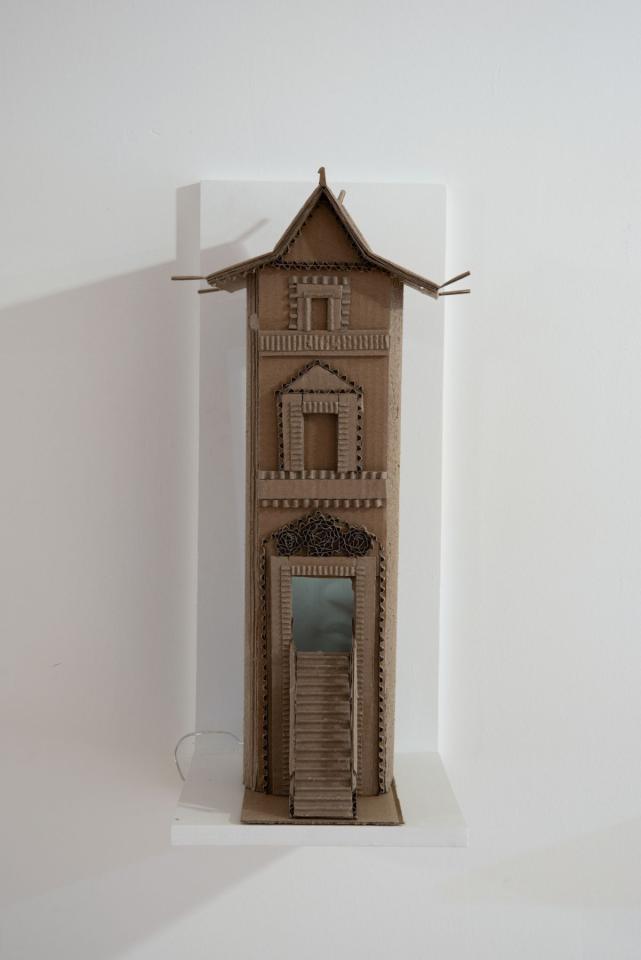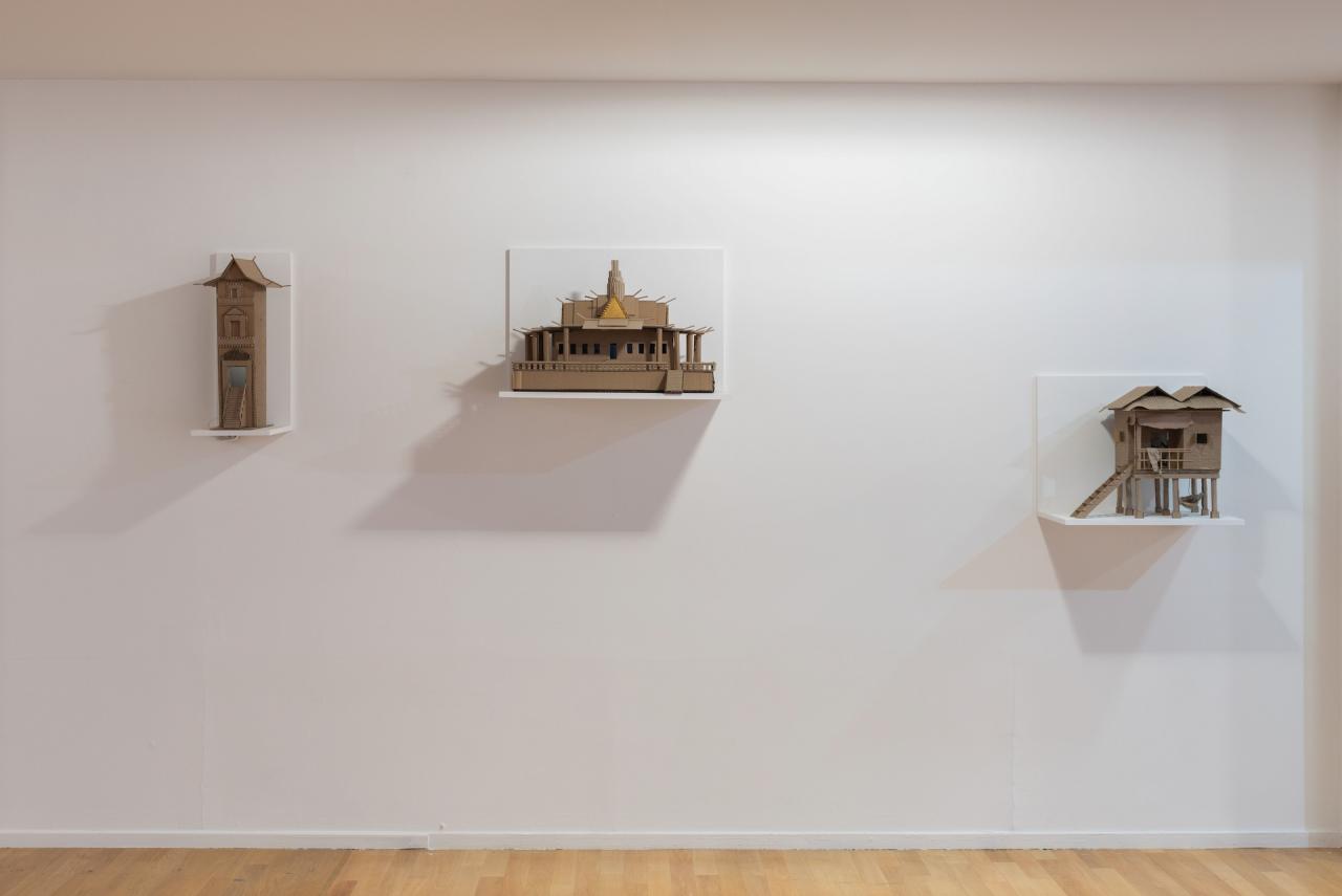 Panser les images, 2022-2025, série de 4 maquettes en carton, vue du projet d’exposition Jardin secret, 2025, dans le cadre de l’exposition collective Mezzanine Sud – Prix des Amis des Abattoirs, 2025, Les Abattoirs, Musée – Frac Occitanie Toulouse, Toulouse, détail, photo Cyril Boixel
