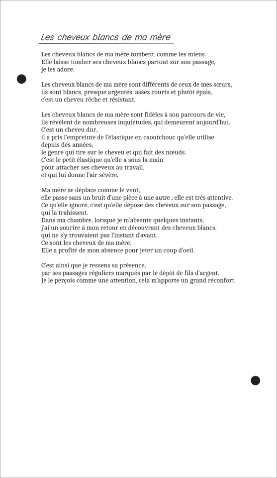 Écrin, 2024, cheveux blancs de sa mère, vue du projet d’exposition Jardin secret, 2025, dans le cadre de l’exposition collective Mezzanine Sud – Prix des Amis des Abattoirs, 2025, Les Abattoirs, Musée – Frac Occitanie Toulouse, Toulouse, photo Cyril Boixel