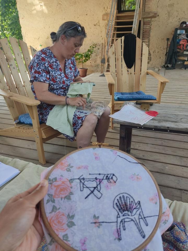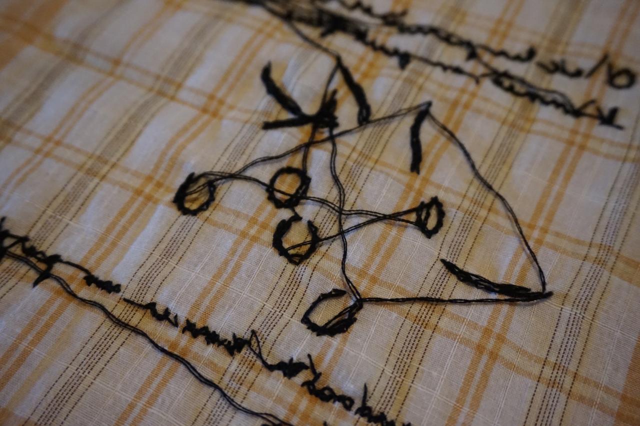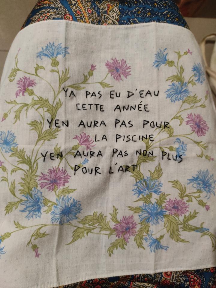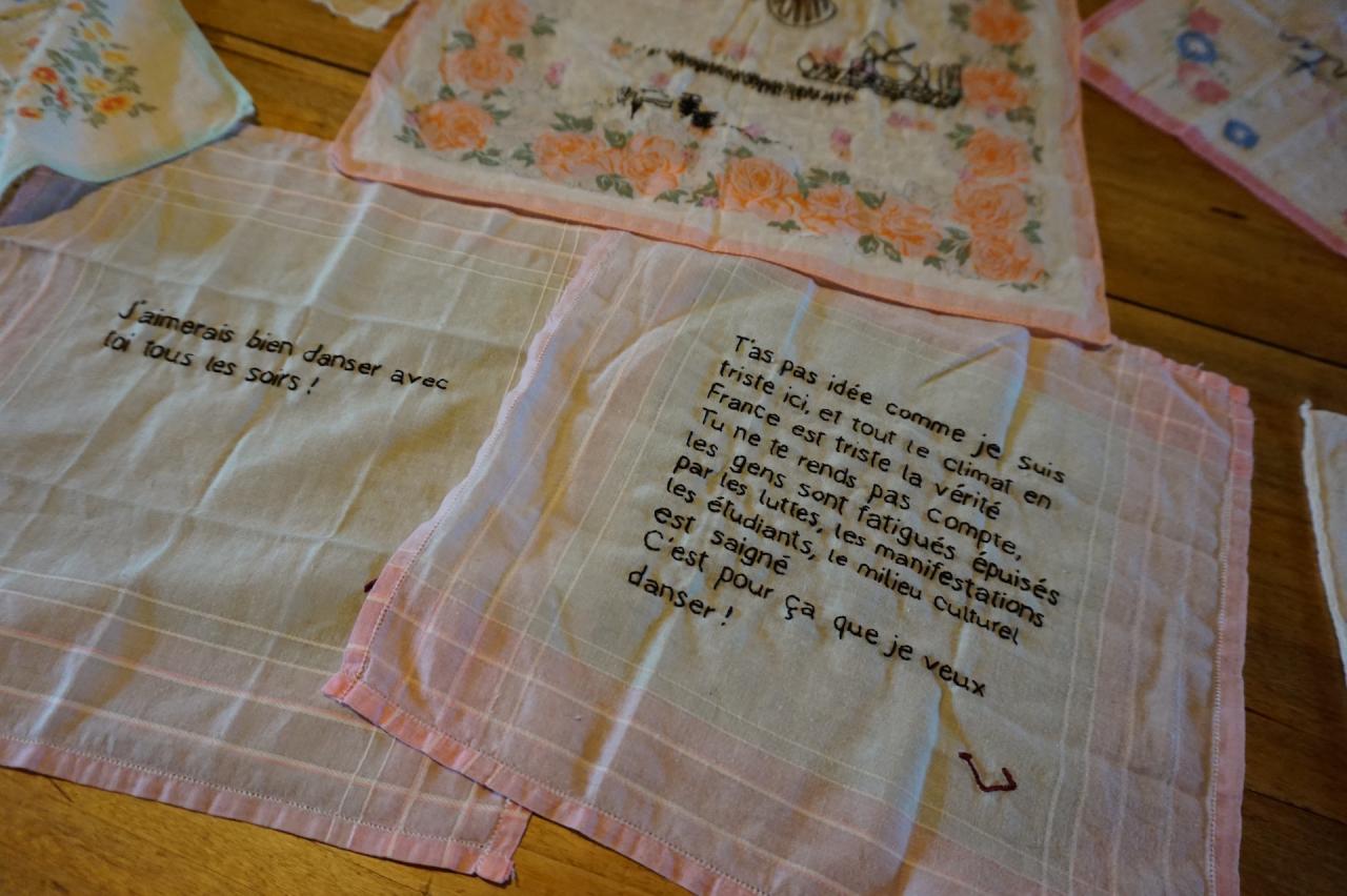 Performance et série de mouchoirs brodés