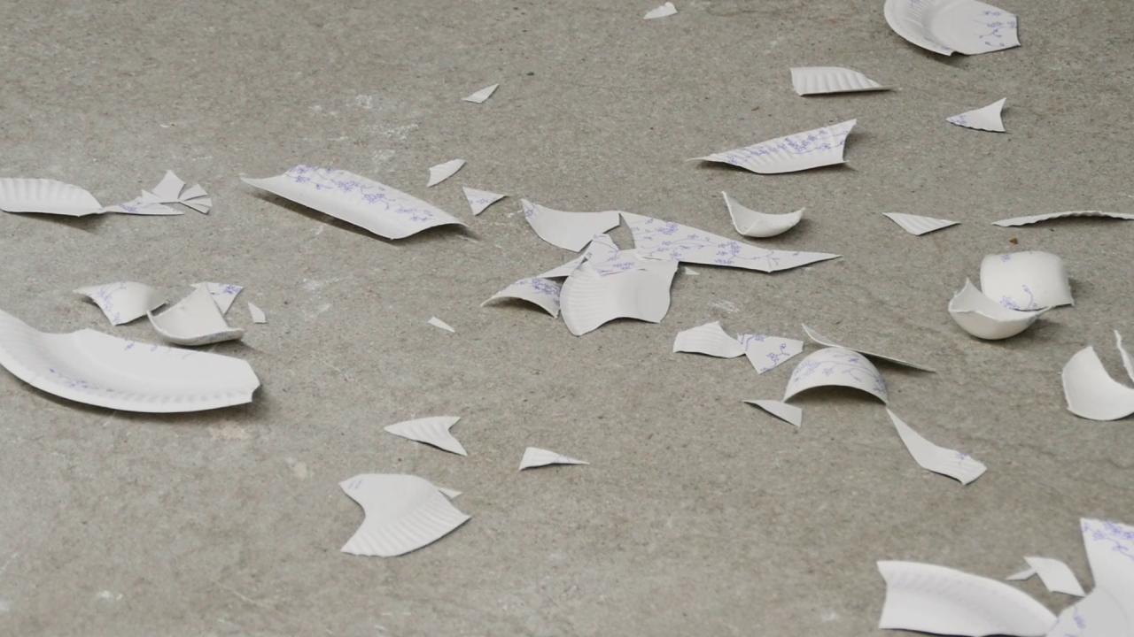 Du bruit au silence, du silence à la catastrophe, de la catastrophe à la bêtise, de la bêtise à la scène de ménage, de la scène de ménage à la poésie, de la poésie au paysage, du paysage à la célébration, de la célébration à la magie ! L’assiette en papier, sans histoire ni devenir, rompt avec la tradition et, dans le même temps, l’honore à sa façon. Elle nous rend attentif/attentive et laisse place à la rêverie et à l’émerveillement.