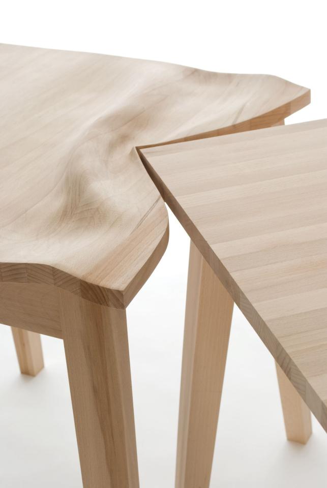 Tables choquées, 2011, hêtre massif, 68 x 74 x 74 cm chaque, photos Véronique Huyghe, Ensci, détails
