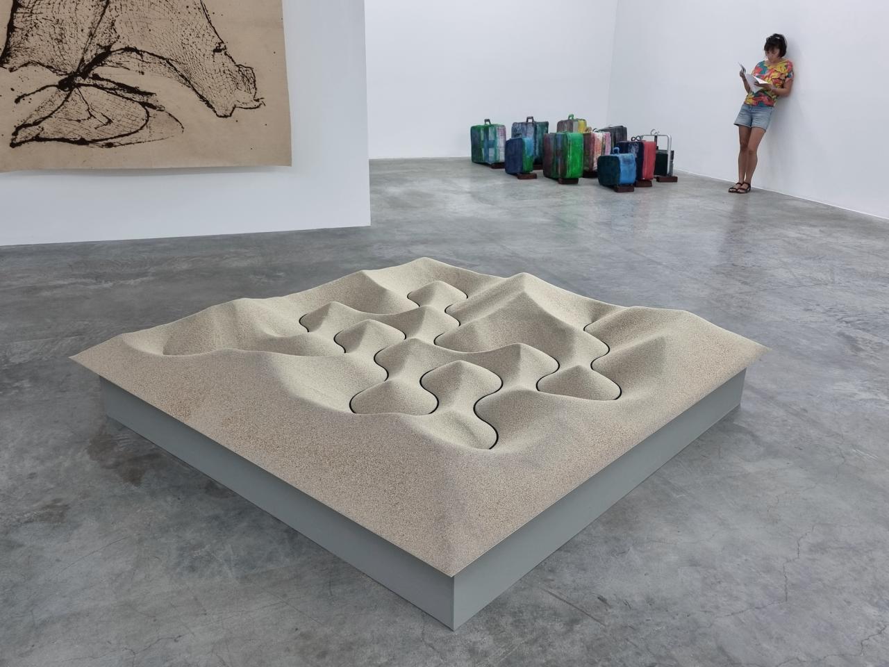 Truchet (les trois digues), 2022, sable, contreplaqué et bois, 30 x 207 x 207 cm, collection Frac Occitanie Montpellier, vue de l’exposition Sète-Palermo, CRAC Occitanie, Sète, 2022