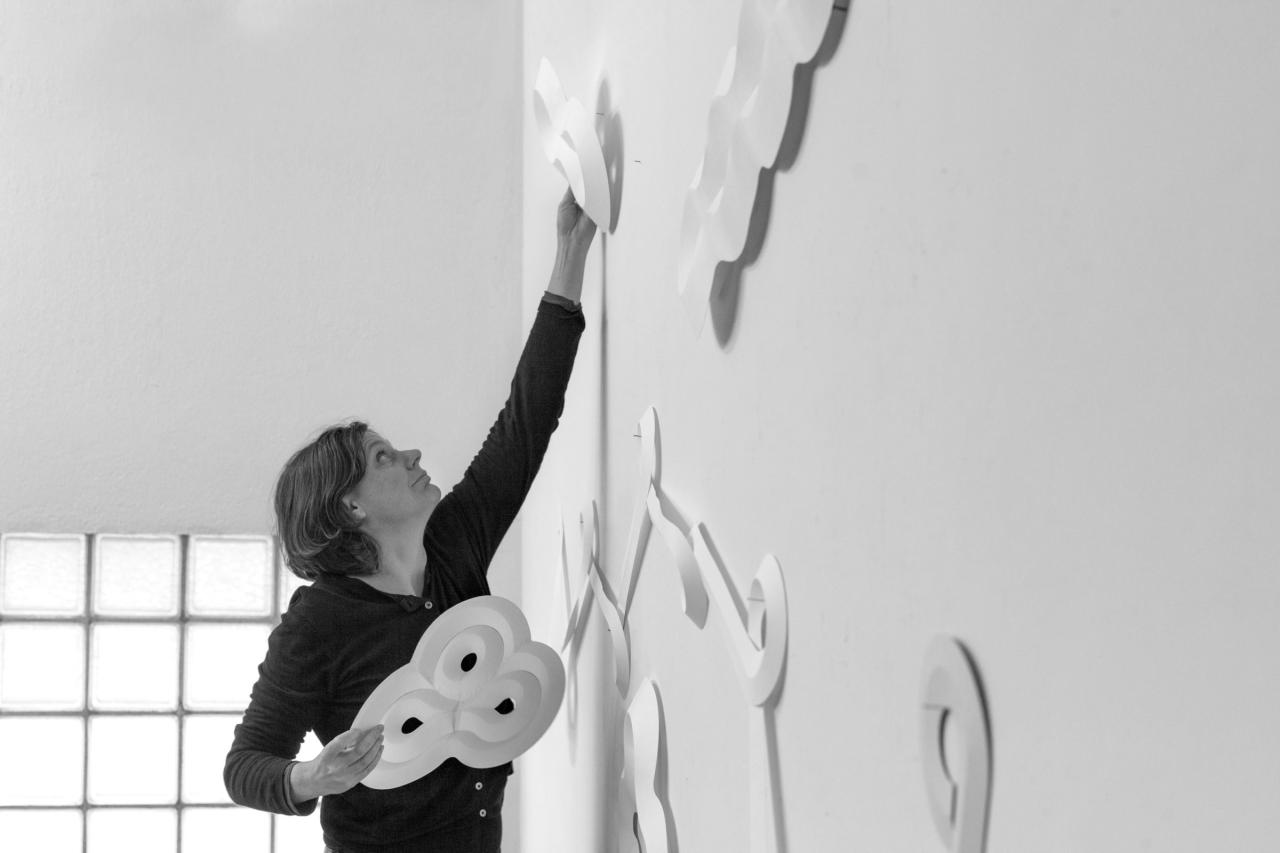 M.C. A.-M : Vos projets se réfléchissent et s’inventent d’abord avec des maquettes en papier, dont d’ailleurs certaines ont déjà les qualités d’une œuvre aboutie mais ils se déploient — comme le montre cette exposition — par des propositions qui impliquent des matériaux très différents : la résine, le métal, le sable mélangé à la cire, la porcelaine dont les propriétés physiques comme la manière de les travailler sont chaque fois spécifiques. Vous confiez donc la réalisation de ces œuvres à des entreprises ou des artisans spécialisés. Peut-on dire que cette dépendance envers qui réalise votre projet vous donne, paradoxalement, une grande liberté ? Ou la ressentez-vous comme un manque — celui par exemple d’expérimenter de nouvelles formes imprévues nées du processus de travail ?