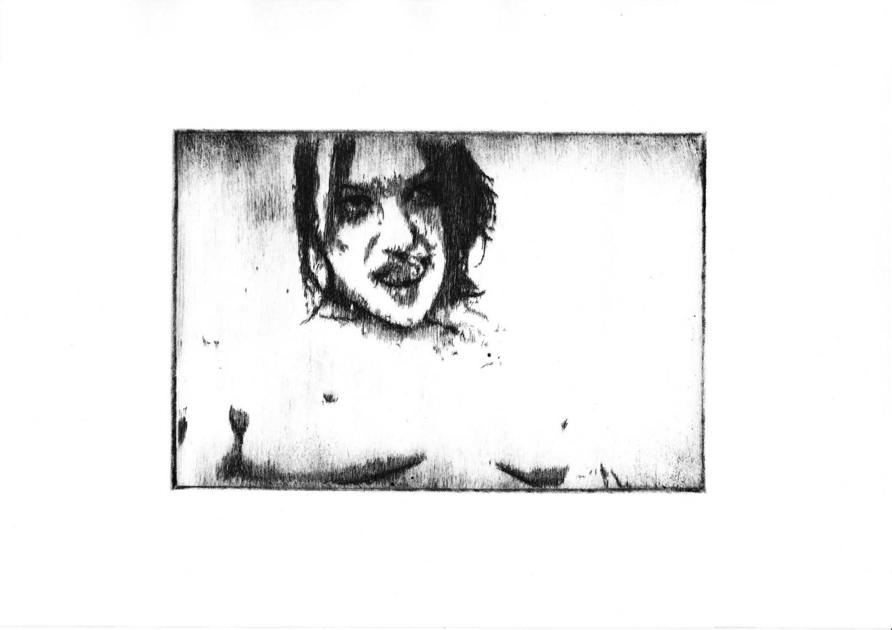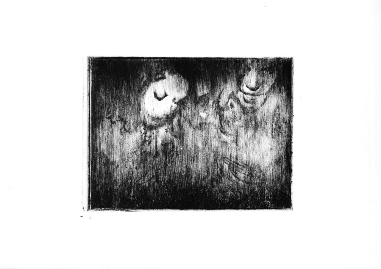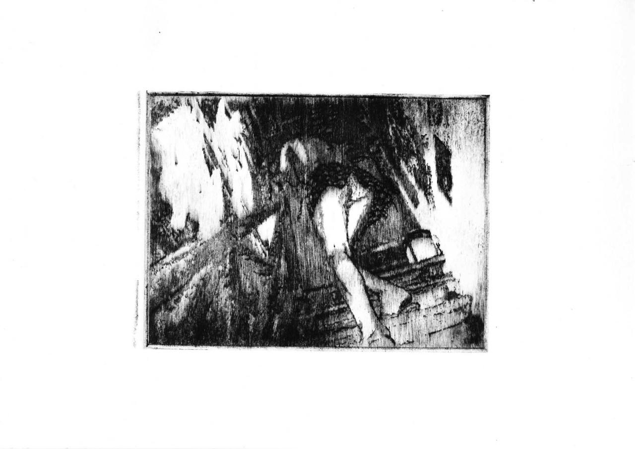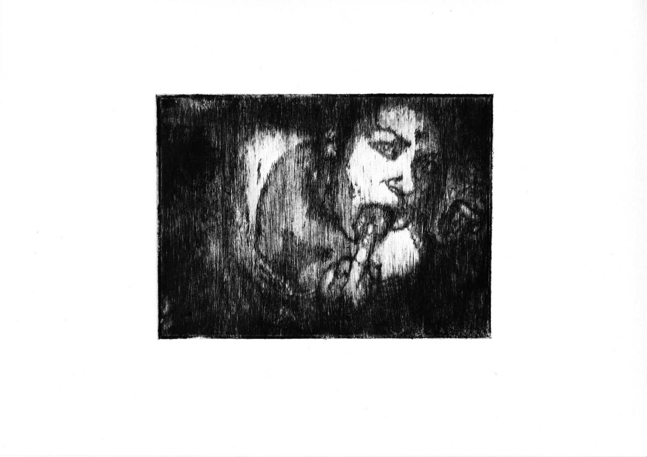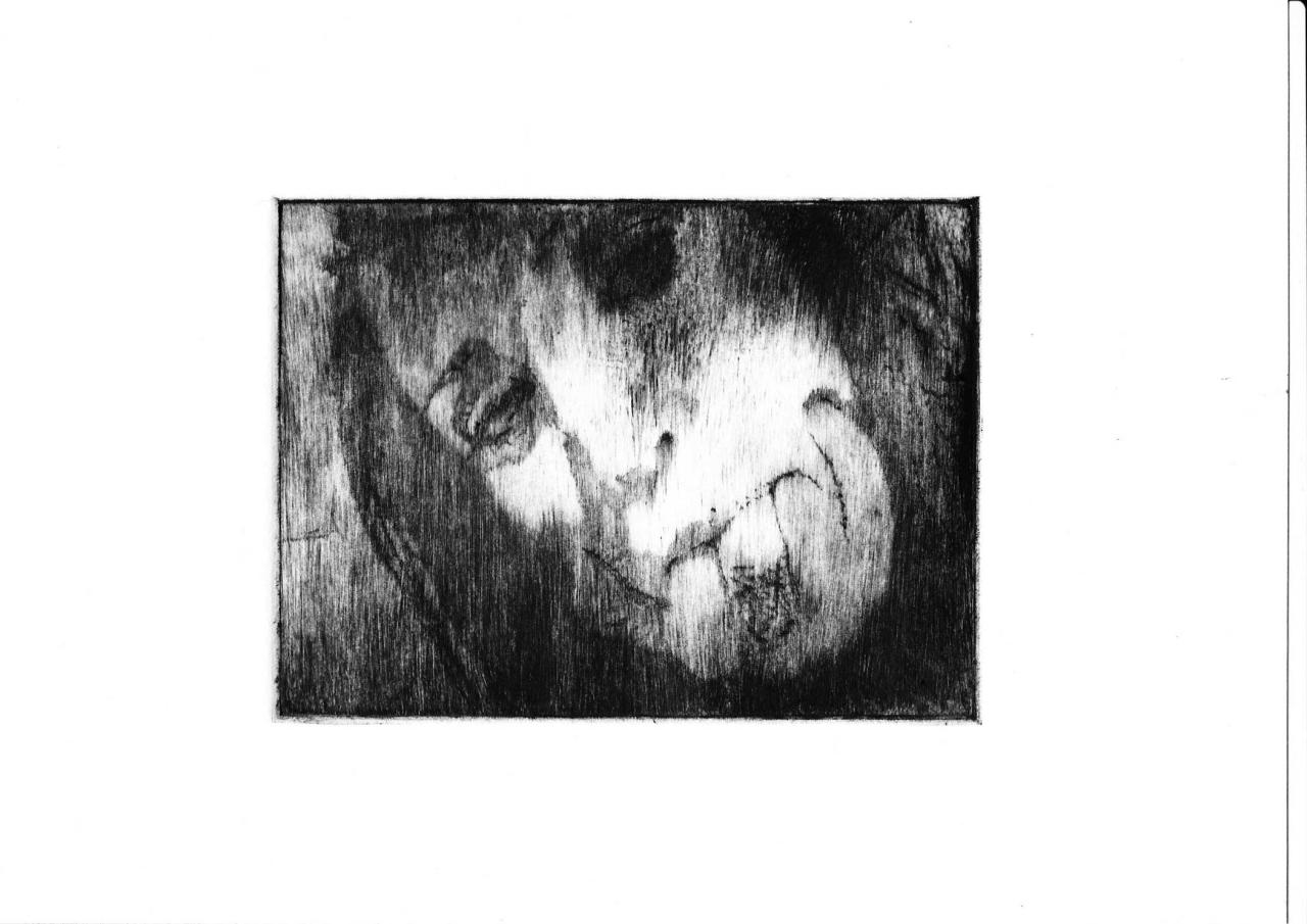 Pointe sèche sur plexiglass tirée sur Bfk Rives 250 gr, 35 x 39 cm