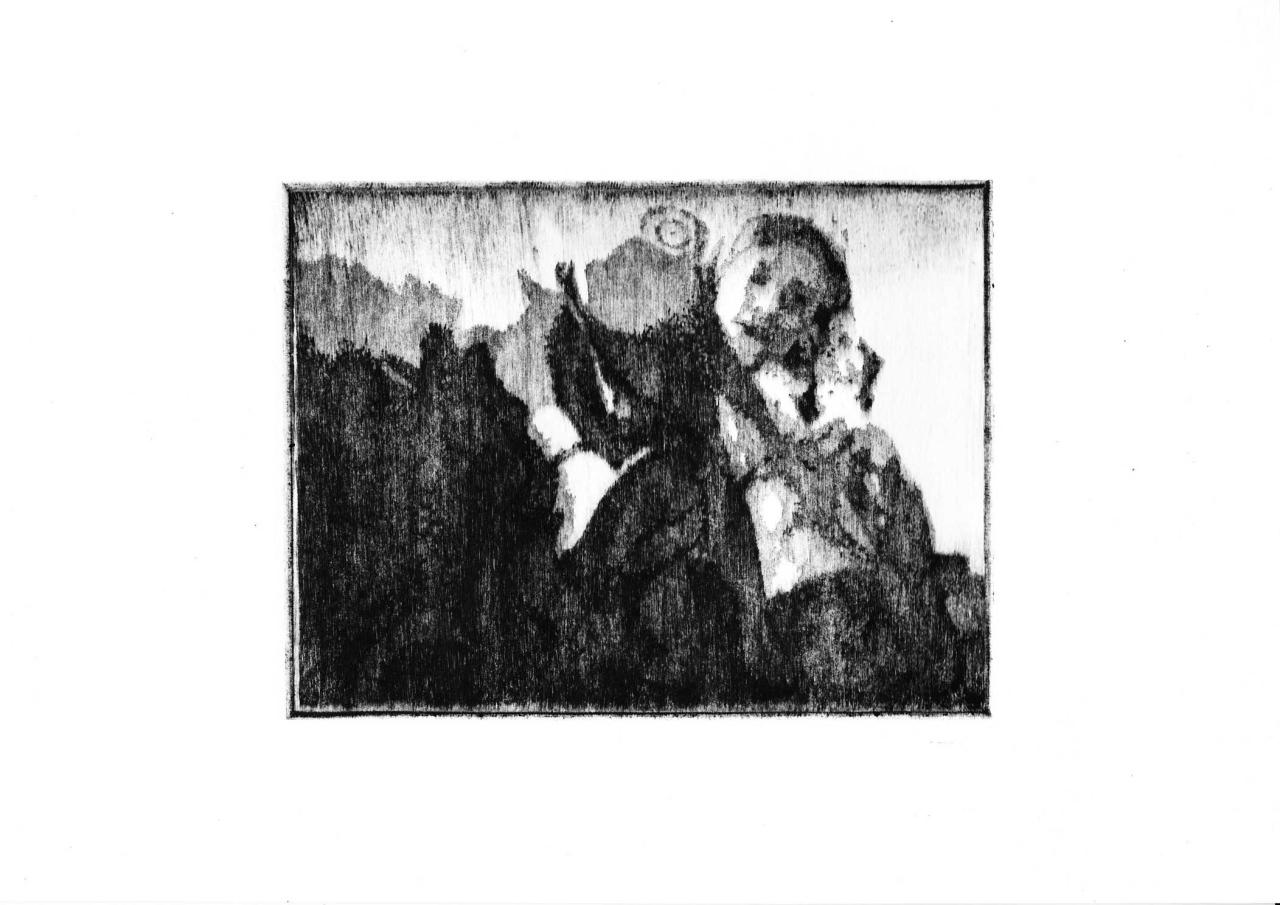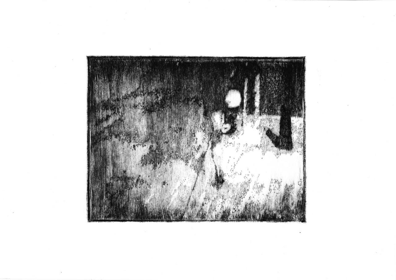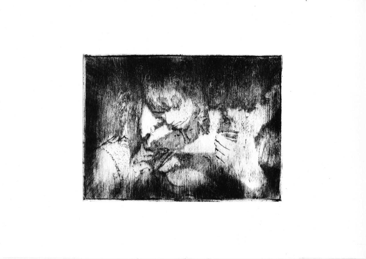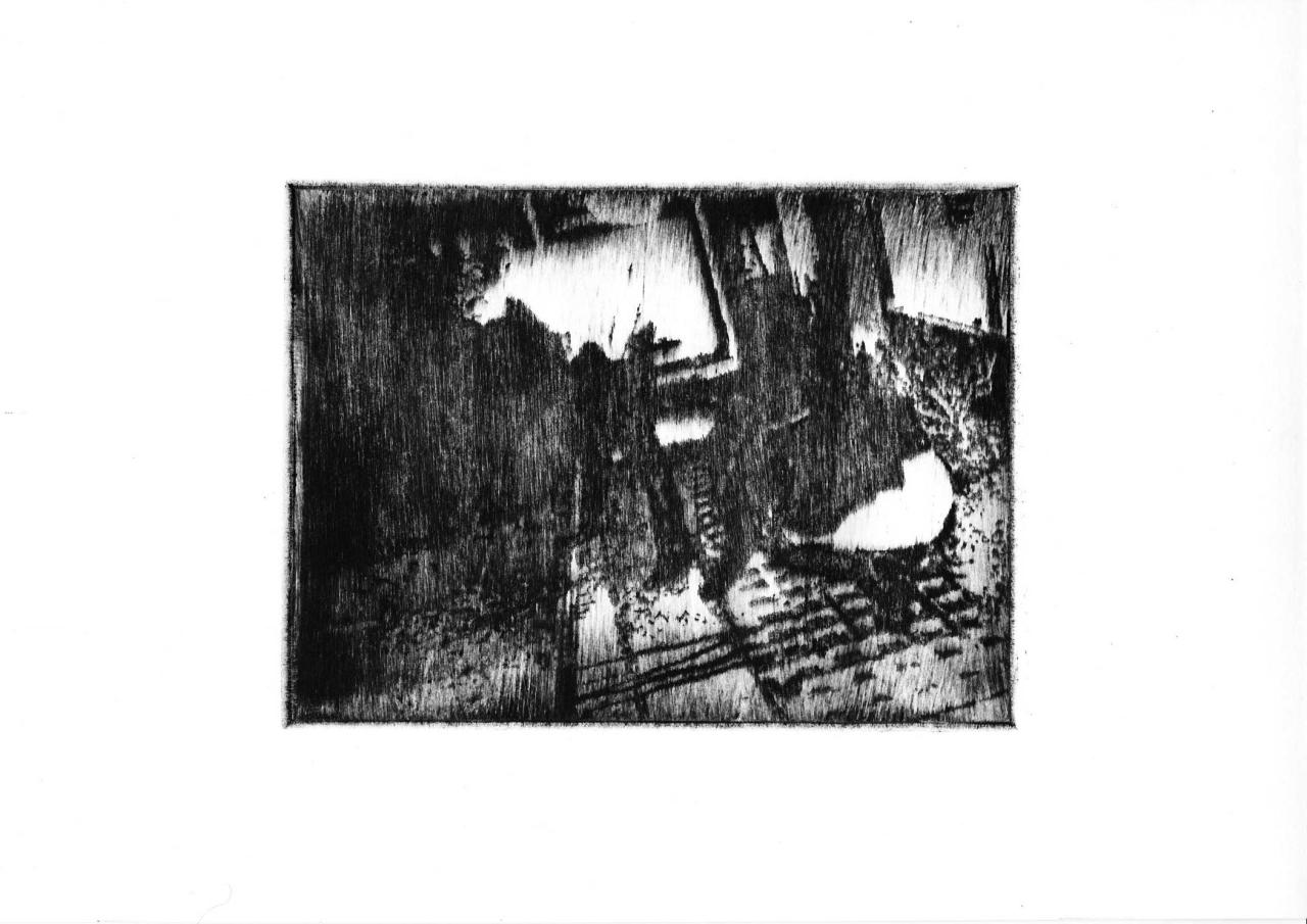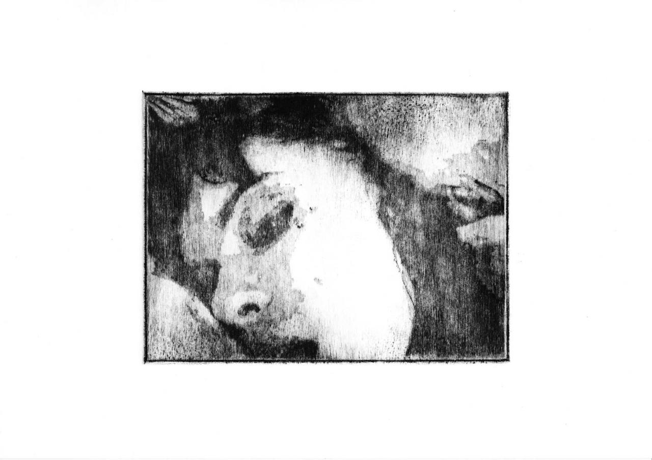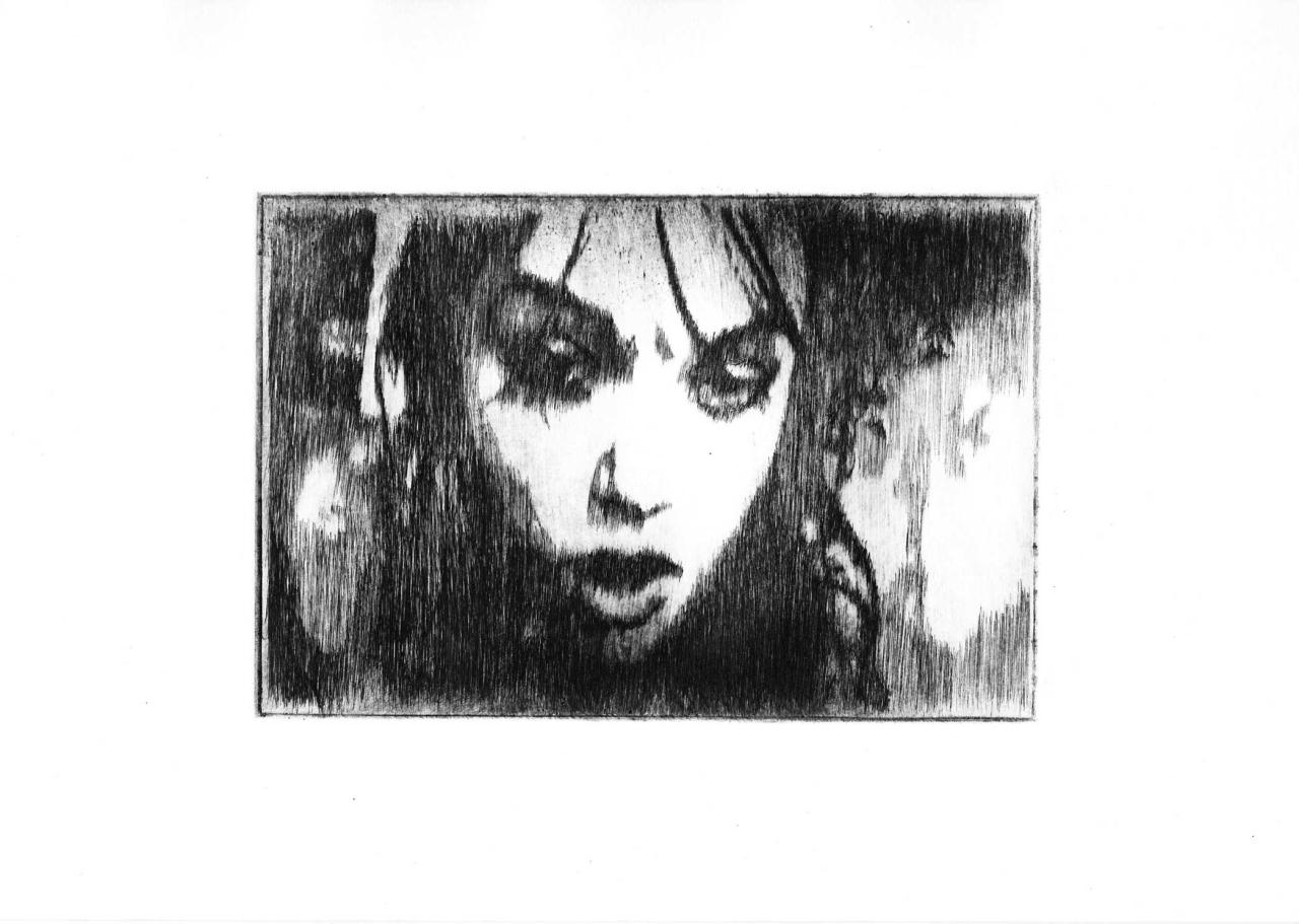 Pointe sèche sur plexiglass tirée sur Bfk Rives 250 gr, 35 x 39 cm