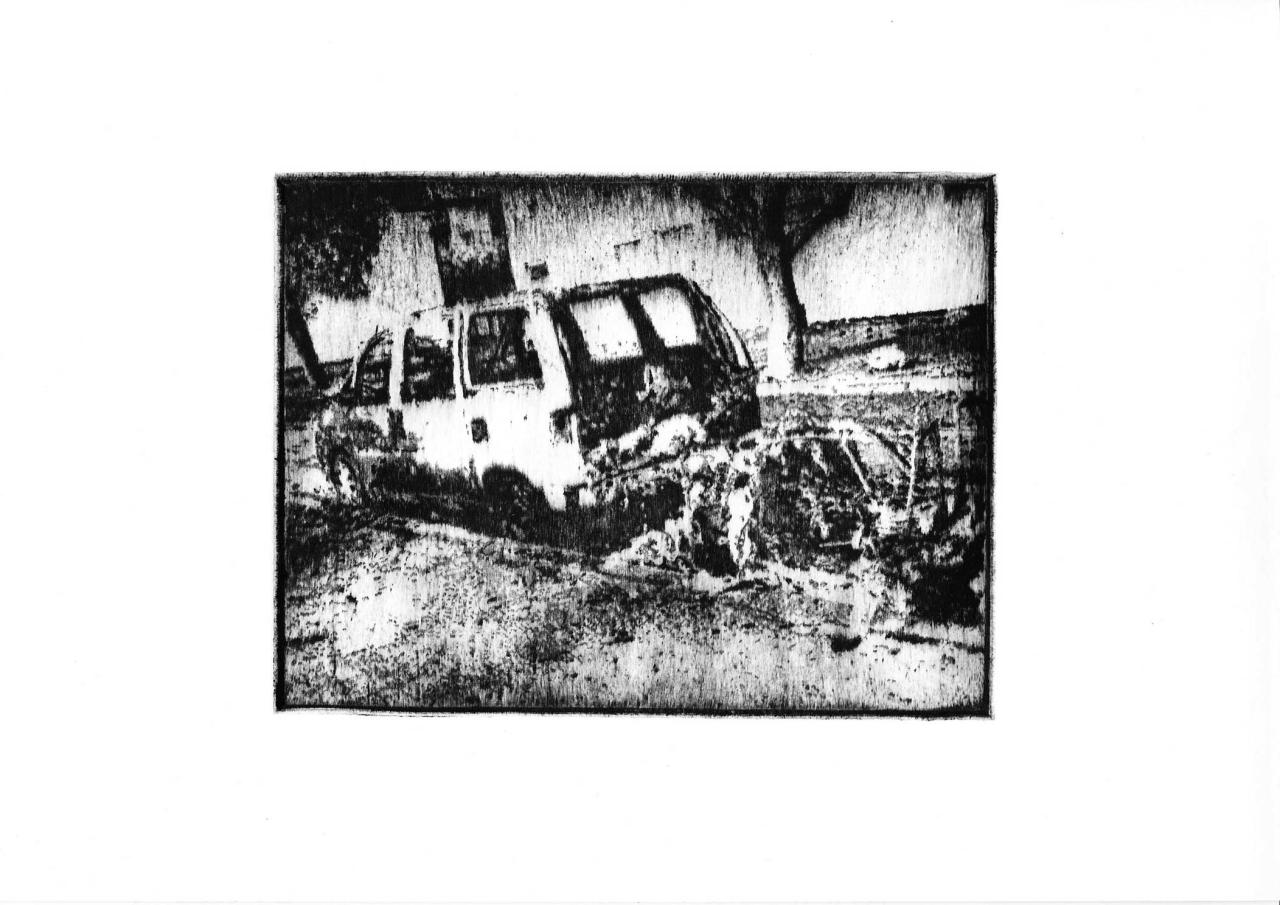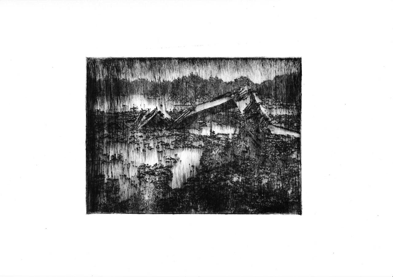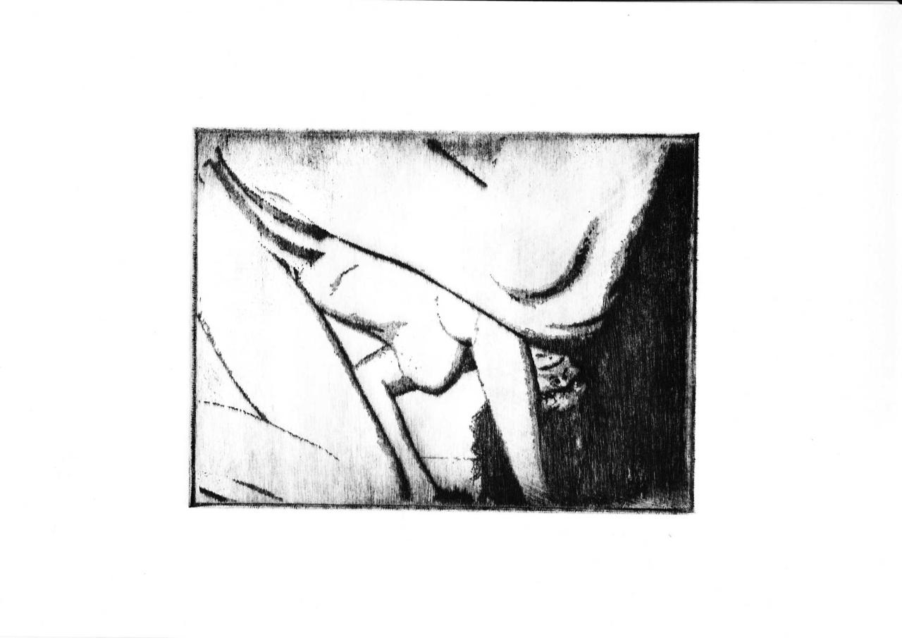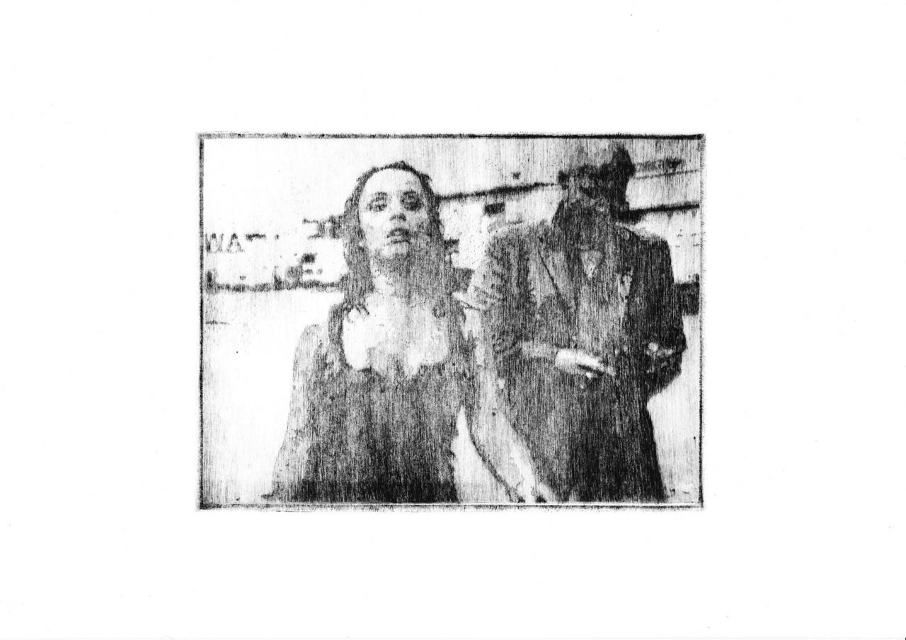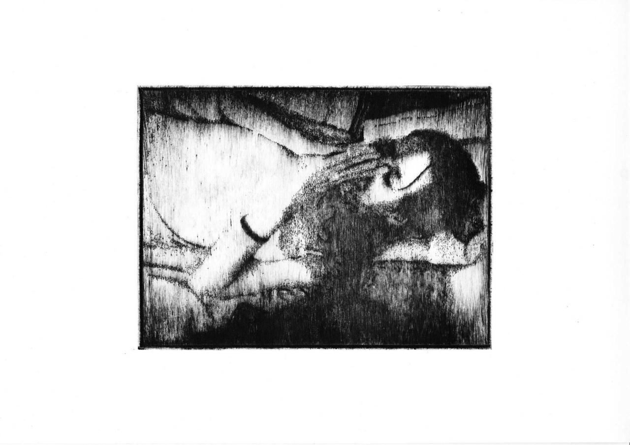 Pointe sèche sur plexiglass tirée sur Bfk Rives 250 gr, 35 x 39 cm