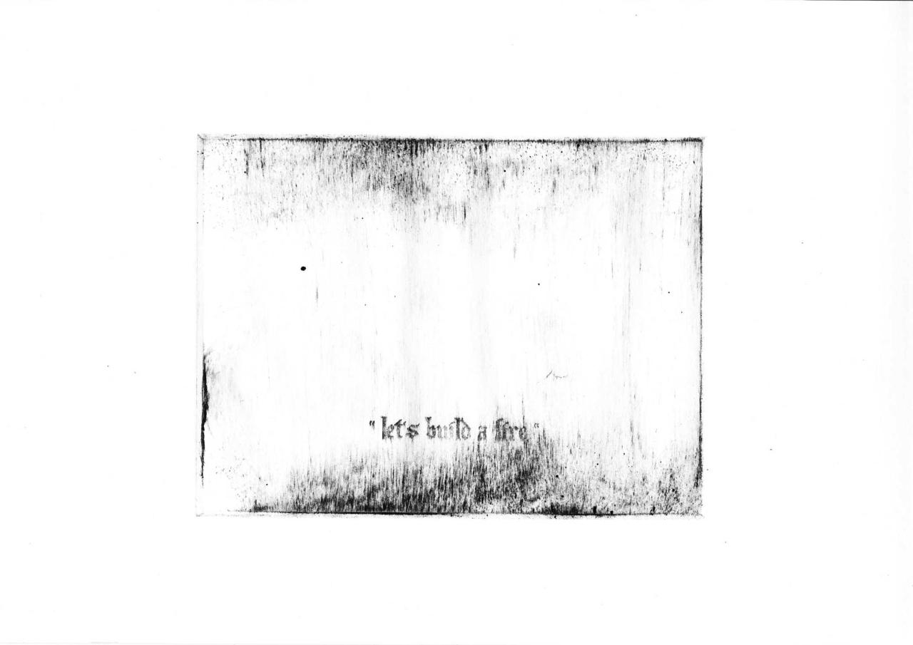 Let’s Build a Fire, 2014, série de 38 gravures, pointe sèche sur plexiglass tirée sur Bfk Rives 250 gr, 35 x 39 cm
