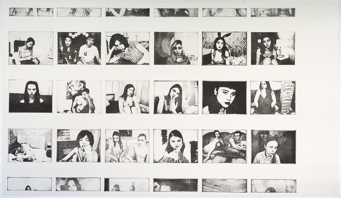 L’artiste, dès ce titre, révèle que le matériau a été détourné, le sujet déplacé : ce ne sera plus le cam-porn, mais « l’ennui propre à ce nouveau face à face numérique », comme il l’écrit dans sa note d’intention. Ce sont les moments « entre », les intermèdes, les coulisses, l’antichambre du sexe dans la chambre filmée, sous l’œil vital et oublié de l’écran, qui est à la fois le miroir, la fenêtre, la glace sans tain. Instantanés du désœuvrement, de solitude, d’absence.