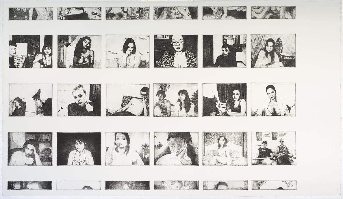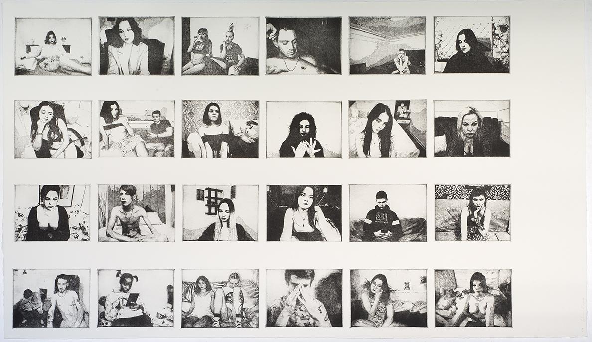 Melancoliate, 2023, pointes sèches sur Plexiglass tirées sur Hahnemuehle 270 gr, 120 x 70 cm, photo Cedrick Eymenier