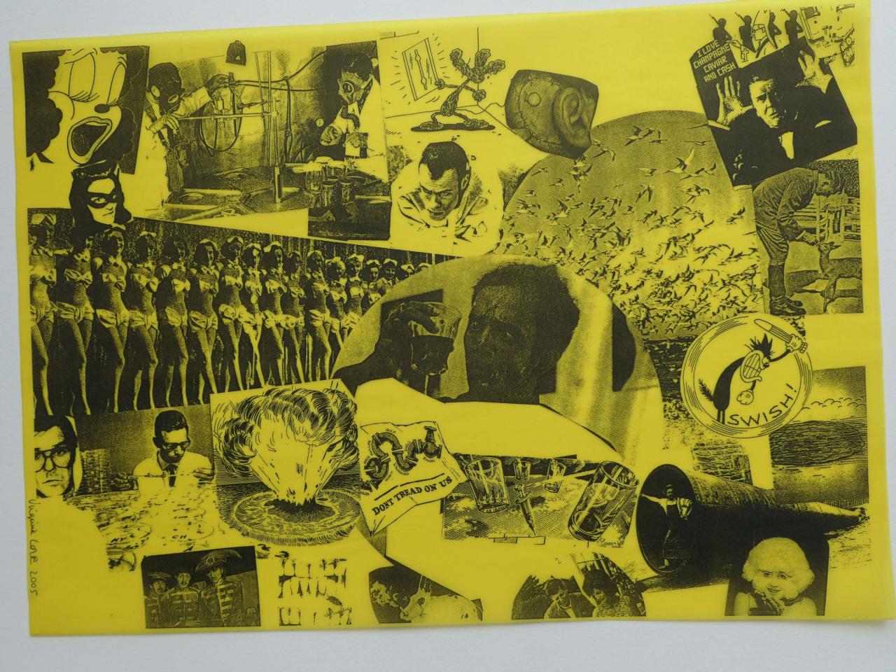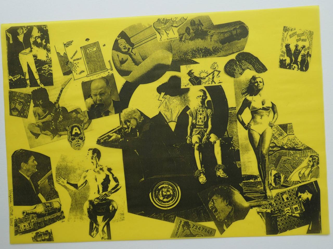 Photocopies sur calque jaune tirée à la feuille, à partir de collage sur papier