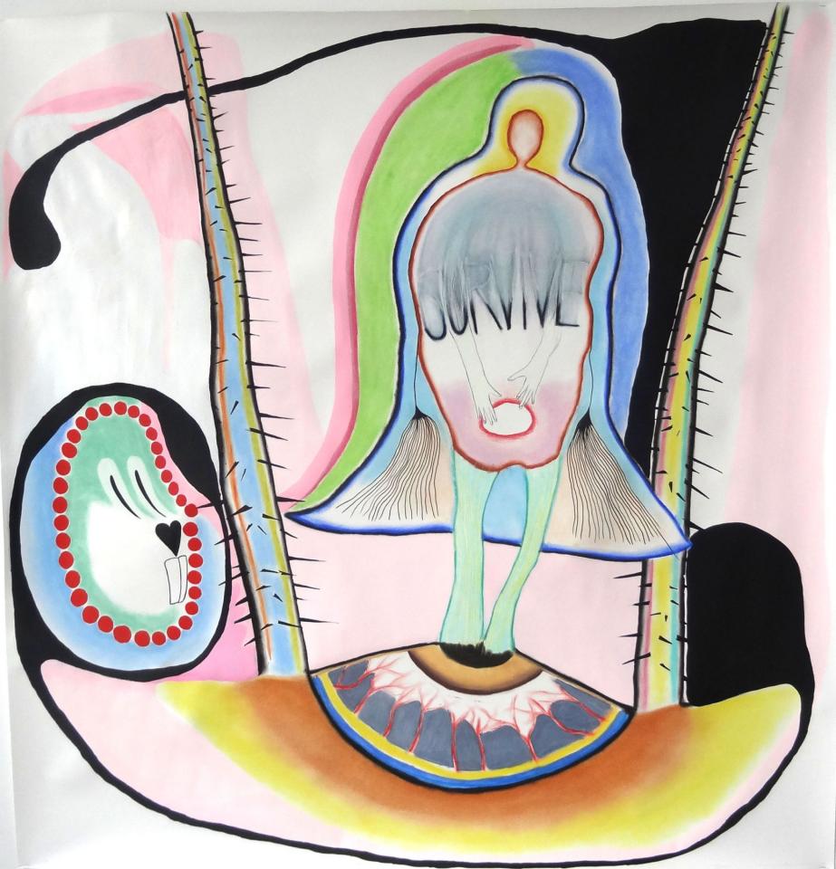 53, 2016, pastel sec, acrylique, crayon de couleur, 150 x 150 cm