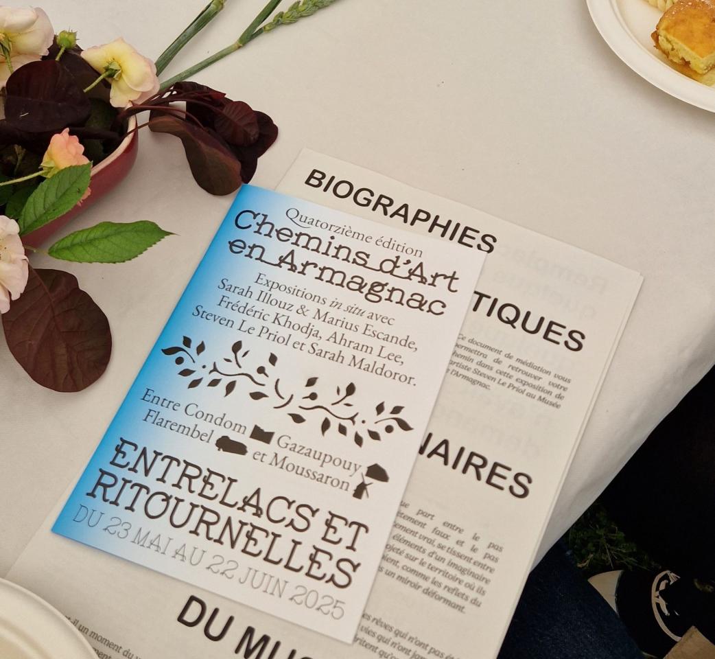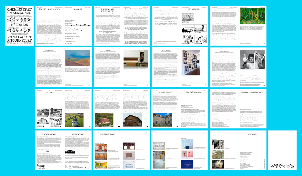 dossier de presse de la 14ème édition de Chemins d’art en Armagnac, graphisme Hugo Amenouche, à télécharger ici