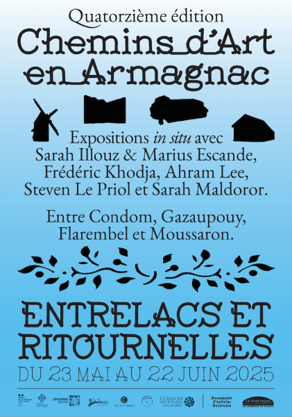 Nous vous invitons du 23 mai 22 juin 2025 dans le Gers aux alentours de Condom à découvrir les expositions de cette 14ème édition de Chemins d’Art en Armagnac : ENTRELACS ET RITOURNELLES.