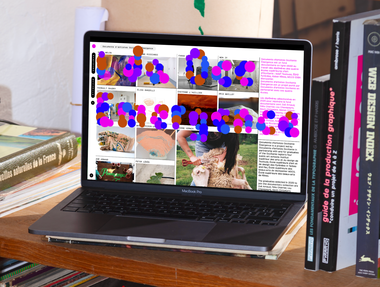 Le site, aujourd’hui composé de 40 profils, propose des dossiers monographiques réalisés par les jeunes artistes, designer·euses et designer·euses graphiques fraichement diplômé·es, avec la complicité de l’équipe de Documents d’artistes Occitanie. Chaque dossier se compose de reproductions photographiques de leurs œuvres, de vues d’expositions, de vidéos, de repères artistiques, de textes et de biographies.