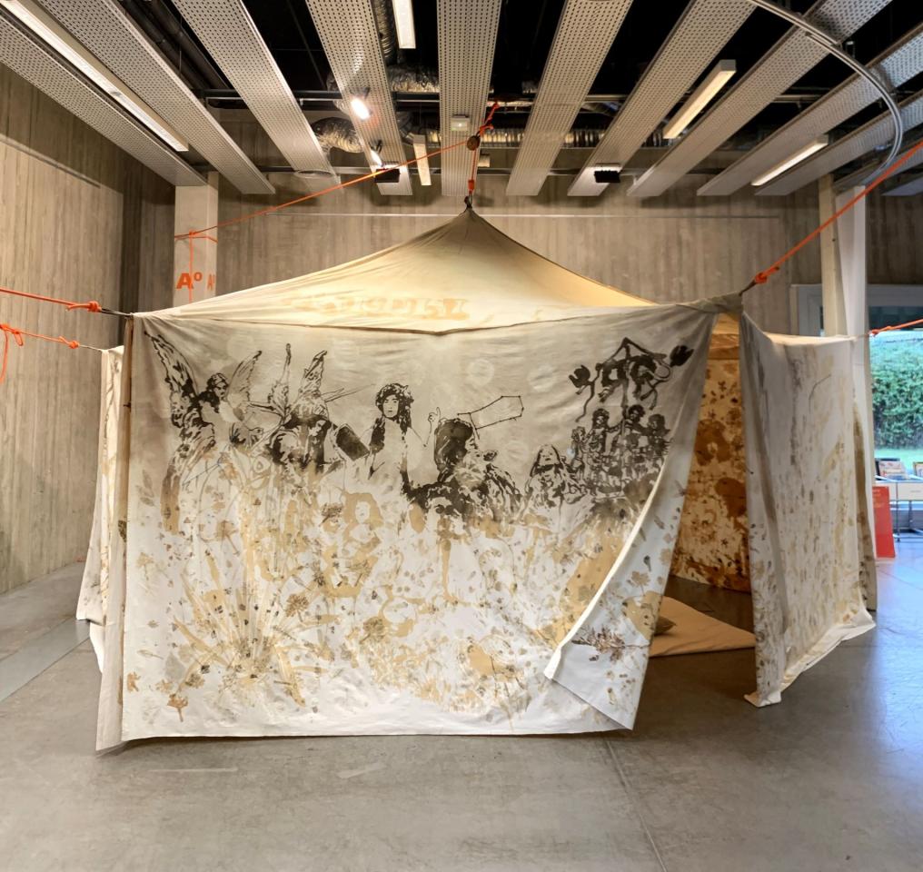 Concernant la tente1 , ça lui donne une autre valeur. Moi, je l’avais pensée comme un espace de lien ou de méditation, et là ça sera plus un espace de lecture. Cela reste finalement un espace silencieux, de rêverie, mais avec d’autres outils et d’autres personnes.