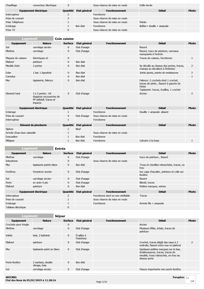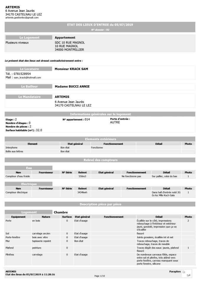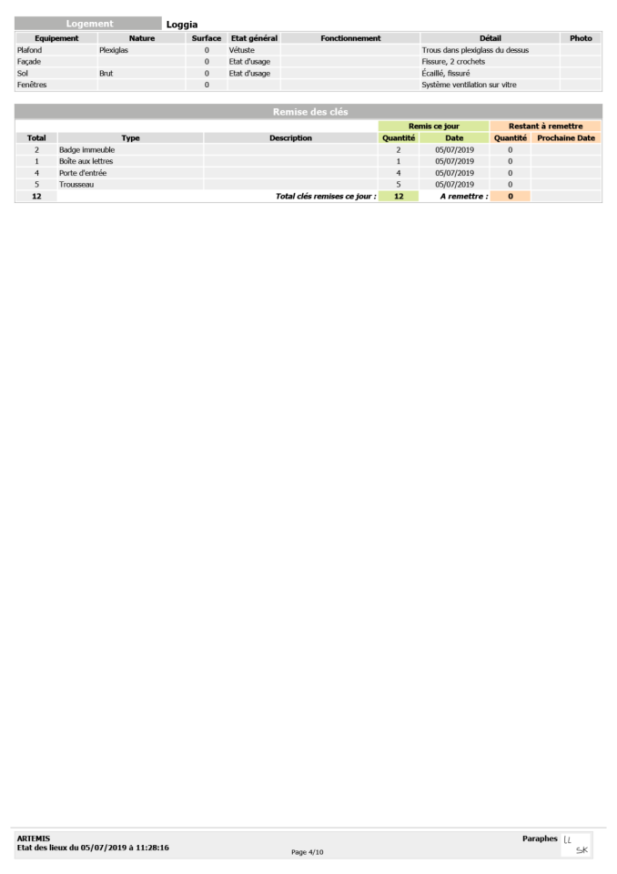 Artemis - Traces de vie, 2023, coffret, état des lieux d’entrée, détail